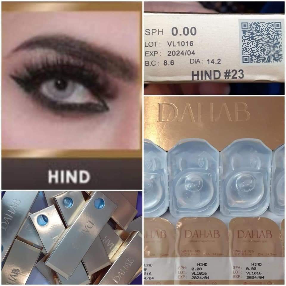 • Dahab Hind is pure light grey tinted contact with a combination of grays as well as whites and also uses no limbal ring. A bestseller throughout the USA, Europe, as well as GCC including UAE as well as KSA, Hind colored lens cover light or dark eyes entirely for an all-natural look on a daily basis.